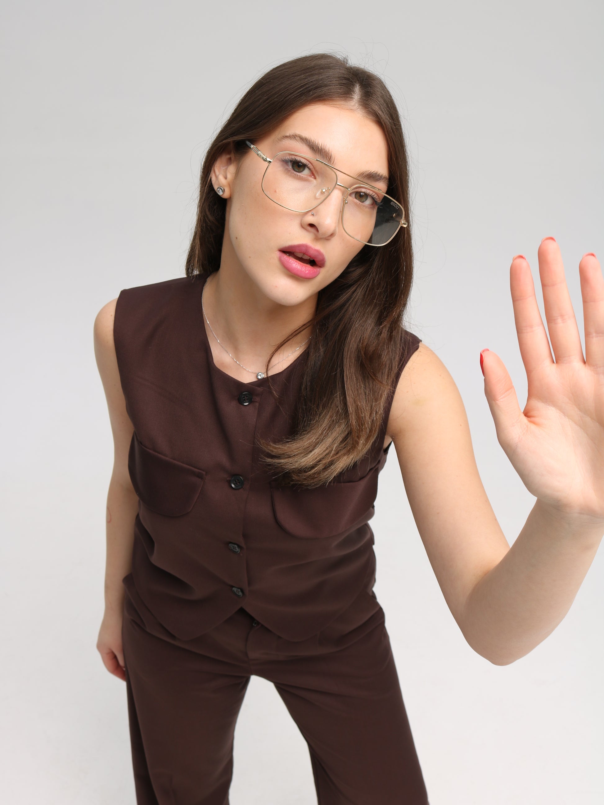 მუქი ყავისფერი ჟილეტი/Dark brown jacket